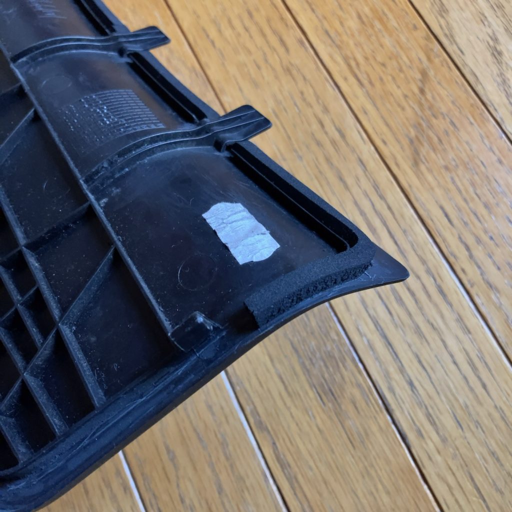 スポンジに厚みがあるので、上側を力一杯押し込まないと前の留め具にハマりません。